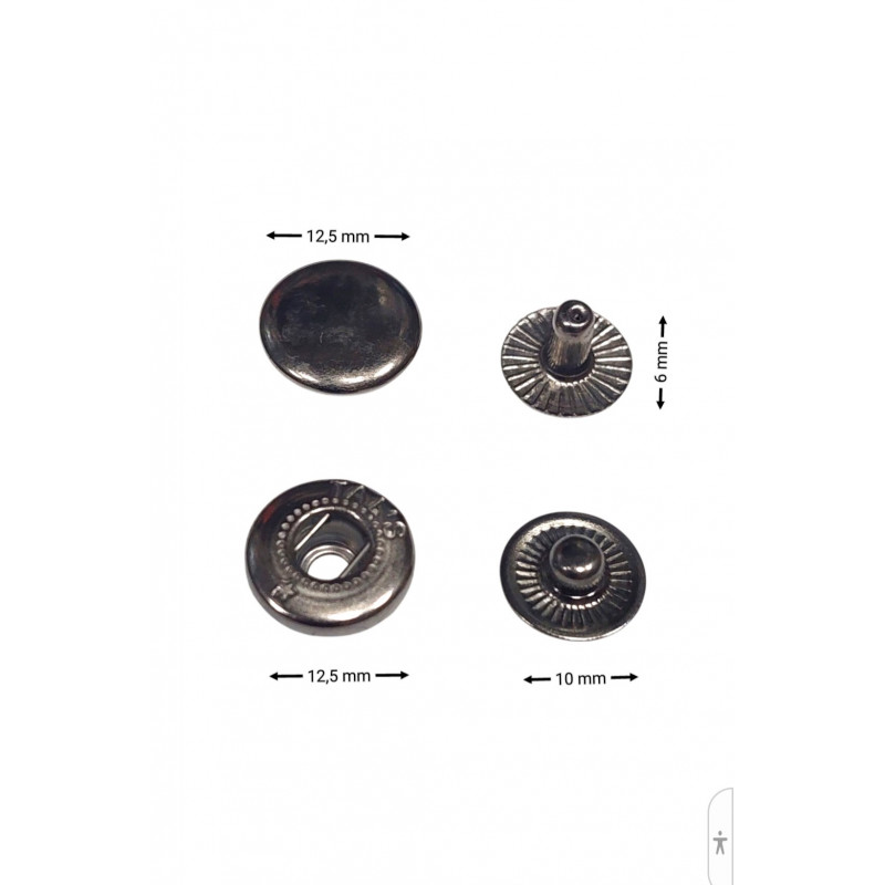 Кнопки металлические №54, диаметр шляпки: 12.5 мм состоит из нескольких частей, каждая из которых имеет определенные размеры.